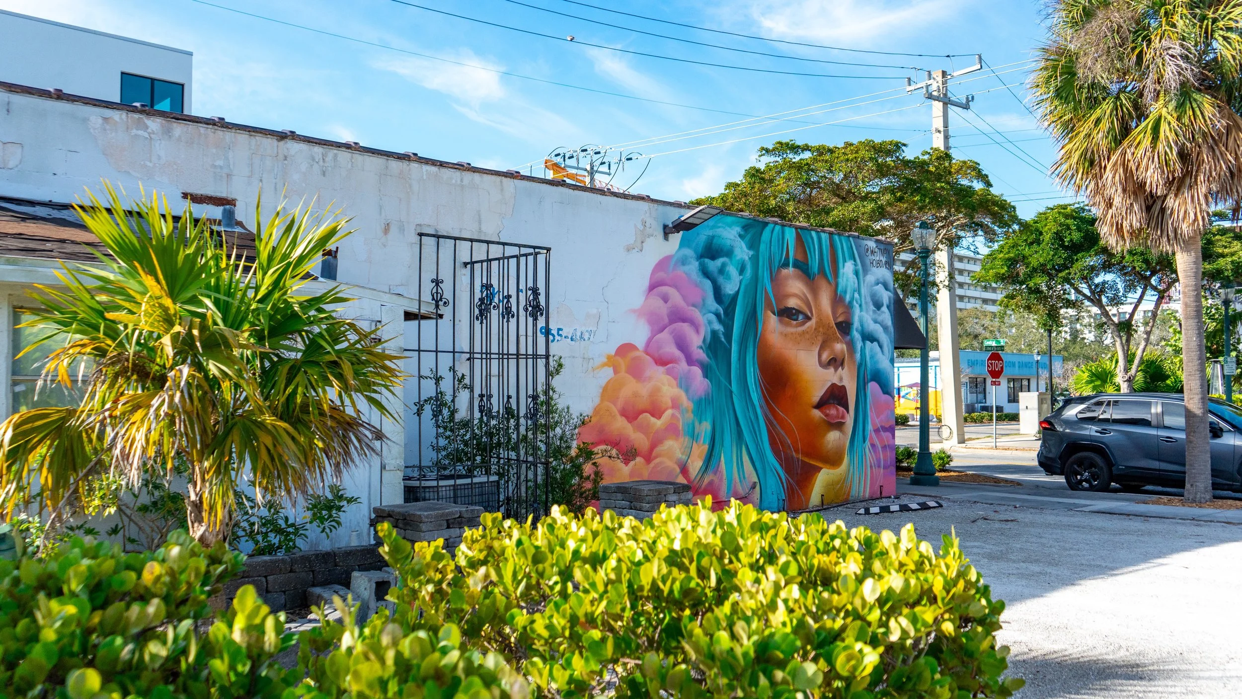 “In more ways than one the mural is an abstract tribute to Sarasota in how I was experiencing it right then and there and I hope that the joy, positivity and electric energy I felt when painting it reflects that back to the viewer.“